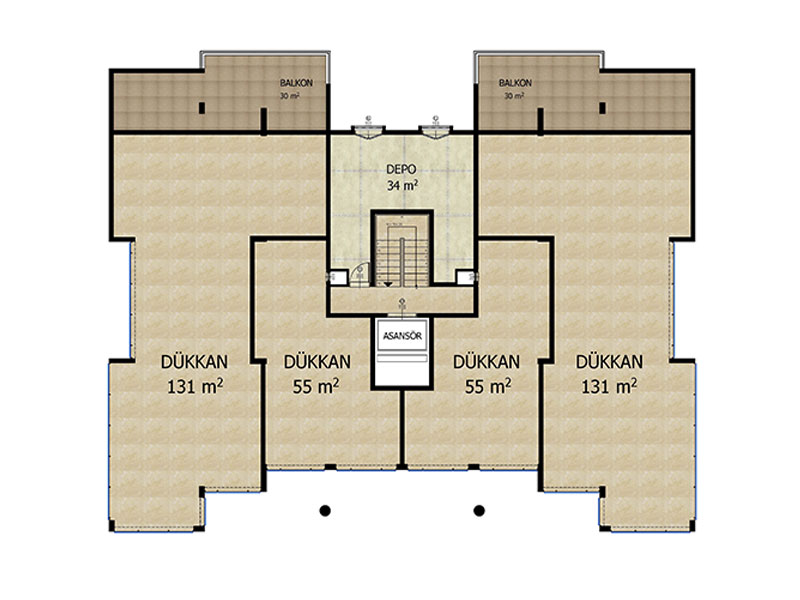 - 3+1 Dubleks Daireler Brüt: 180 m2, Net: 116 m2, Altkat Net: 55 m2